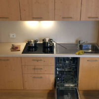 All’interno della struttura abbiamo a disposizione alcune camere, di diversa tipologia dotate di angolo cottura. Queste stanze diventano mini appartamenti che, possono essere monolocali per 2-3 persone, bilocali con un bagno per 4 persone e bilocali con doppi servizi che possono ospitare fino ad un massimo di sei persone. Alcuni appartamenti sono, come da foto dotati anche di lavastoviglie.
