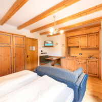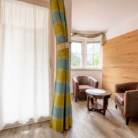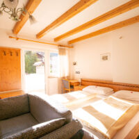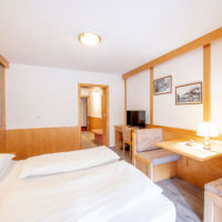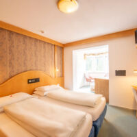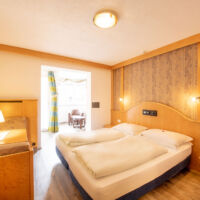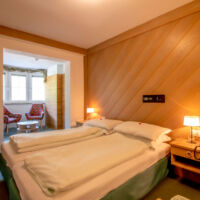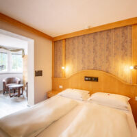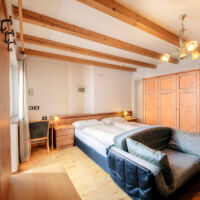 Camere da letto matrimoniali/doppie molto ampie con possibilità di aggiunta terzo letto o quarto letto per piano famiglia con moquette o parquet, dotate di servizi privati, TV color, radio sveglia, cassaforte, telefono, wifi, frigo, salottino, scrivania e balcone.